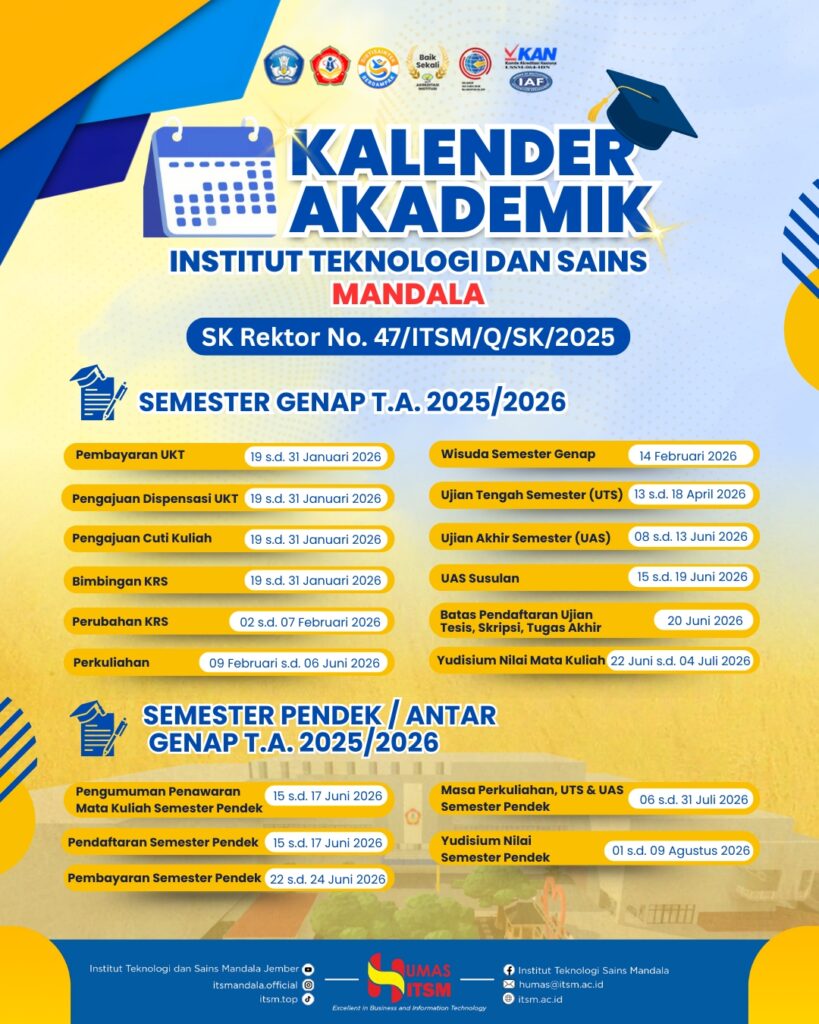 KALENDER AKADEMIK INSTITUT TEKNOLOGI DAN SAINS MANDALA SEMESTER GENAP T.A. 2025/2026